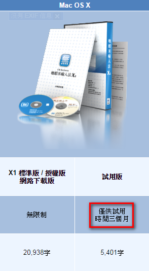 去看看無蝦米 官網,結果有可以試用三個月的版本,但只支援5401個字,所以有些字是打不出來的(真沒誠意)。還有無蝦米自7.0版後,Mac OS X版,將拆開來單獨販售,這這這…對之前買過windows版的人,又必需再花錢了==”。